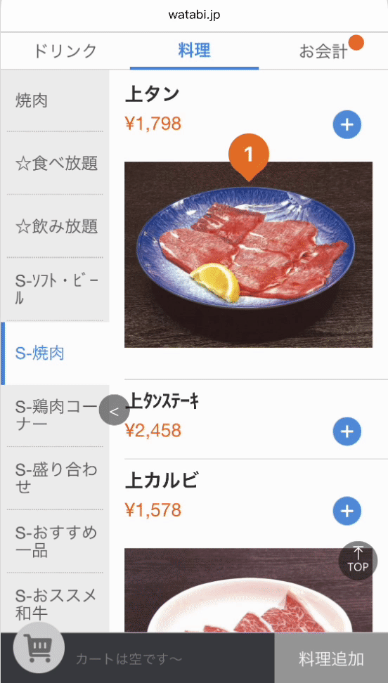 お客様のスマホにアプリをインストールする必要はありません。店内発行のQRコードを読み込むだけで、お店のメニューが表示され、オーダーをすることができます。